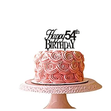 Happy 54th Birthday Cake Topper For 54th Birthday Party Décor Black